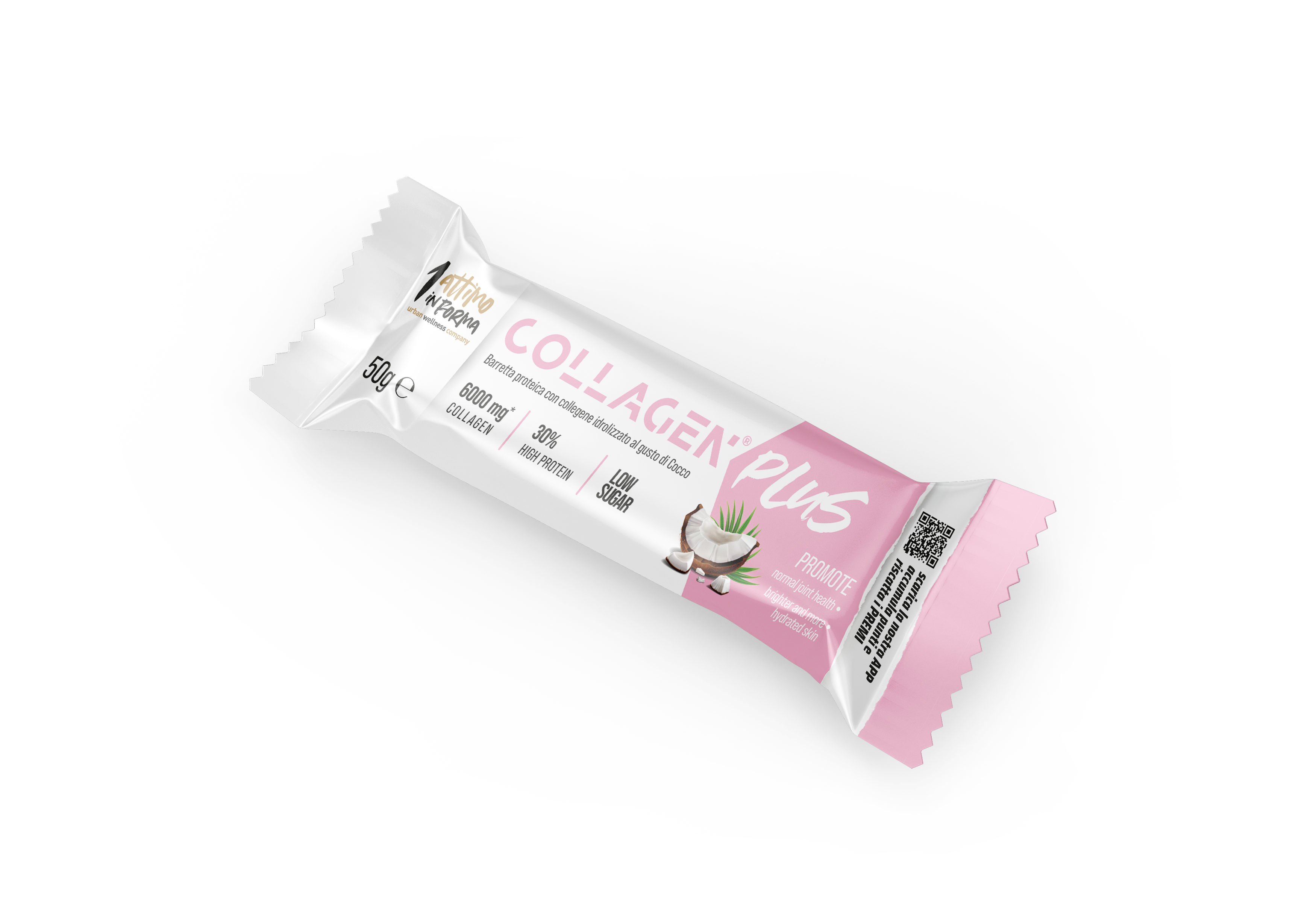 La Collagen Plus al Cocco unisce piacere e funzionalità in una barretta dal gusto ricco e avvolgente. Con 6000 mg di collagene e un contenuto proteico del 30%, è pensata per sostenere la bellezza di pelle, capelli e unghie, oltre che la salute dei muscoli.